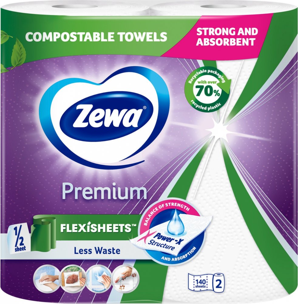 Kuchyňské utěrky mimořádné kvality představují praktického pomocníka do každé domácnosti. Kuchyňské utěrky ZEWA Premium Flexisheets z celulózy obsahují 2 × 140 útržků a budete mít tak vystaráno na delší čas.Klíčové vlastnosti papírových utěrek ZEWA Premium Flexisheets (2 ks)Díky funkci FlexiSheets můžete místo jednoho velkého útržků si odtrhnout pouze jeho polovinuPřekvapí vás vysokou absorpcí a odolností proti protržení díky unikátní Power-X struktuřeBudete je tak s oblibou využívat i mimo kuchyňKuchyňské utěrky ZEWA se zkrátka vyplatí mít po ruce