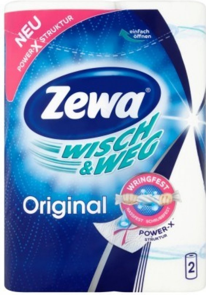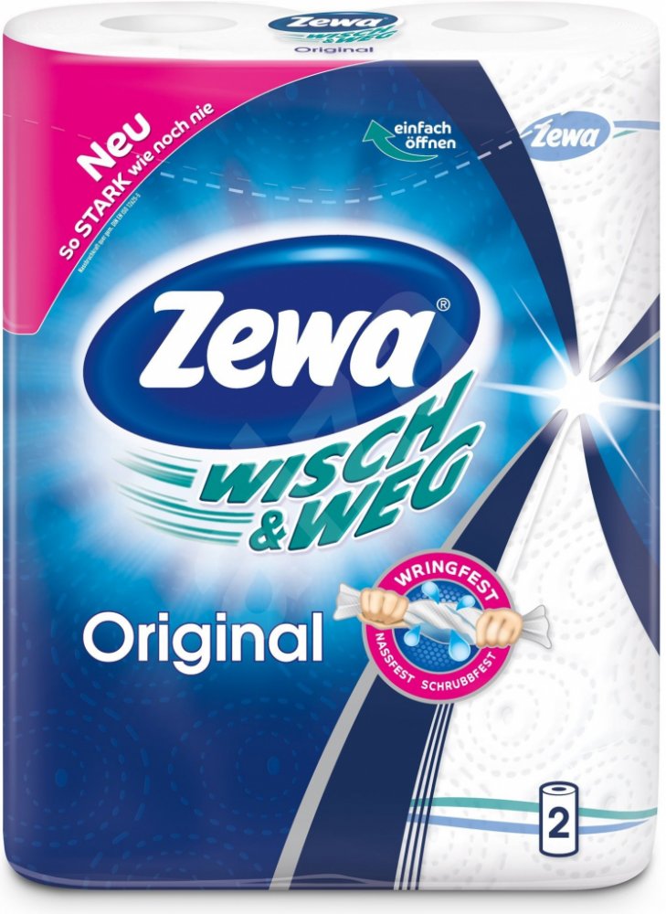 Tyto dvouvrstvé kuchyňské utěrky přinášejí tu nejvyšší kvalitu Zewa. Speciální technologie výroby zaručuje vysokou absorpci a odolnost proti protržení i při namočení. To dělá z těchto utěrek spolehlivého pomocníka v každé situaci, jež může v domácnosti nastat. Jsou ozdobeny klasickým dvoubarevným potiskem. Vlastnosti Zewa Wisch amp; Weg Original kuchyňské utěrky: 2 role, jedna role 45 útržků 2 vrstvy bílý ždímatelný jednorázové a hygienické