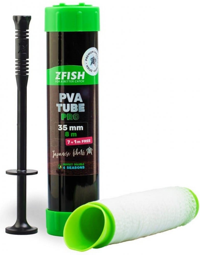 Nabízí 100% rozpustnost a velkou pevnost vláken. Díky zvýšené hustotě výpletu je velmi odolná a udrží vaši návnadu na místě i při tom nejsilnějším náhozu. Odhadovaná doba rozpustnosti je přibližně 25-50 sekund, přičemž rozpustnost závisí na teplotě vody. Punčocha je dodávána včetně praktického tubusu s nakládacím trychtýřem a pěchovadlem pro snadnou a efektivní přípravu krmících punčoch. Naše PVA produkty se vyznačují rychlou rozpustností ve všech teplotách vody a širokou variabilitou, která vám umožní přizpůsobit se každé situaci. K tomu navíc získáte bonus – 7 metrů punčochy + 1 metr zdarma! Šířka: 35 mm Délka: 7+1 m Zdarma! Obsah balení: 8 m PVA punčocha Praktický tubus s nakládacím trychtýřem Pěchovadlo pro snadnou práci s punčochou Ochranný tubus Délka punčochy je měřena v nataženém stavu