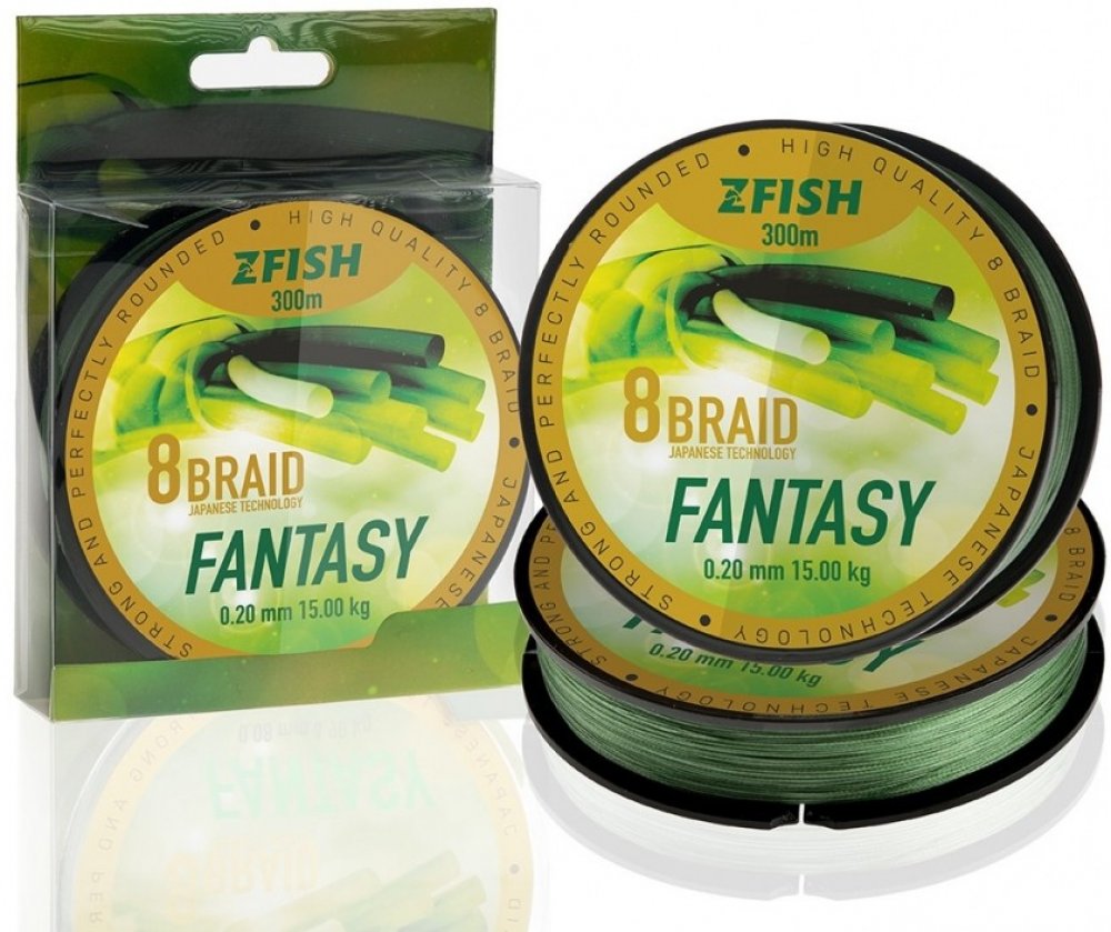 Zfish Fantasy 8-Braid to je kvalitní, pevná a dokonale kulatá pletená šňůra vyrobená japonskou technologií za použití 8-mi vysoce kvalitních PE vláken. Díky použití 8-mi vláken je dosaženo kulatého průřezu a šňůra tedy v očkách prutu neklade takový odpor, snáze klouže a tím pádem jsou s ní náhozy přesnější a dělší. Nejnovější technologie splétání zaručují vysokou pevnost v uzlech a zvýšenou odolno...