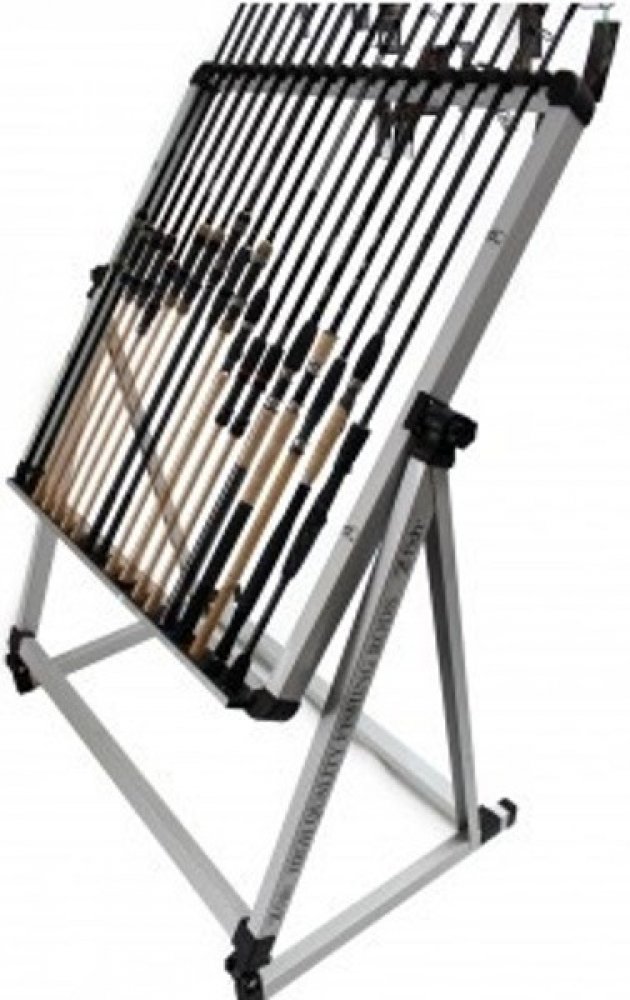 Luxusní hliníkový stojan k prezentaci rybářských prutů. Stojan je polohovací a velmi pekně zpracovaný. Ideální pro rybářské prodejny k vystavení vašich prutů v rozloženém stavu. Stojan je vyrobený ze silných hliníkových profilů. Je určený pro vystavení 18ks prutů.