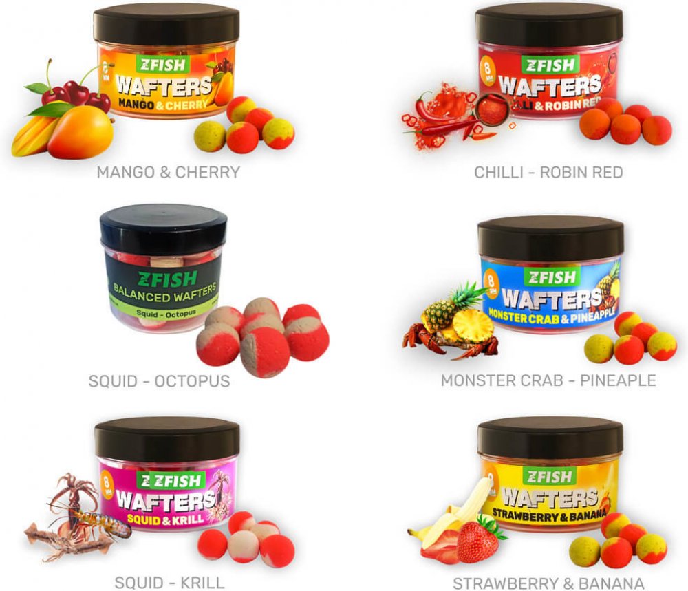 ZFISH Balanced Wafters 8mm je plovoucí nástraha, která se v kombinaci s háčkem stává neutrálně vyváženou. Oceníte ji především při lovu na method feeder, feeder nebo při lovu s klasickým krmítkem. Toto boilies je nesmírně atraktivní, díky dvoubarevnému provedení. Jsou skvělé na krátkodobý lov, závodní chytání, při slabé aktivitě ryb nebo na velmi opatrné ryby. Jejich výhodou je, že zlehka leží u dna a působí tak přirozeněji než např. pop-upy. Jsou však natolik lehké, že kaprovi vletí do tlamy mnohem hlouběji, než očekává. Dají se použít celoročně, včetně velmi chladné vody. K dokonalému fungování použijte spolu s menšími háčky č.10 a 12