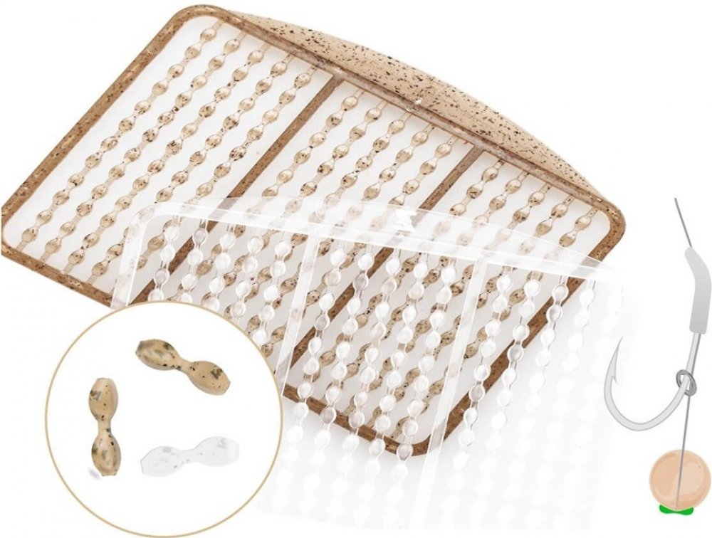 Balení obsahuje dvě sady zarážek: Jednu čirou a druhou transparentní hnědou pro dokonalé přizpůsobení nástraze.