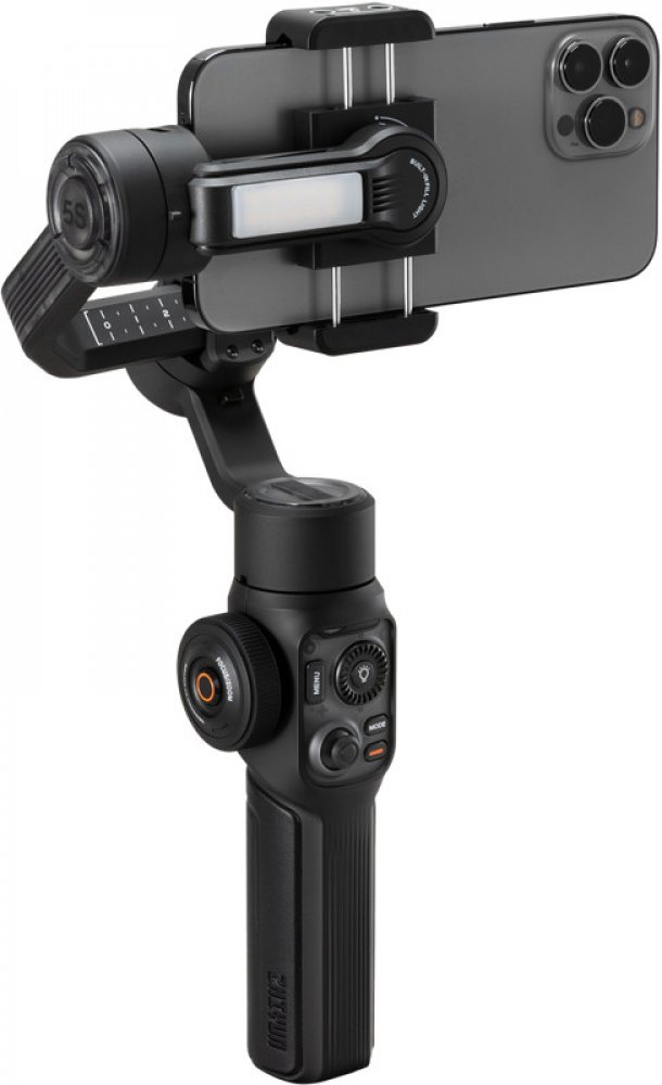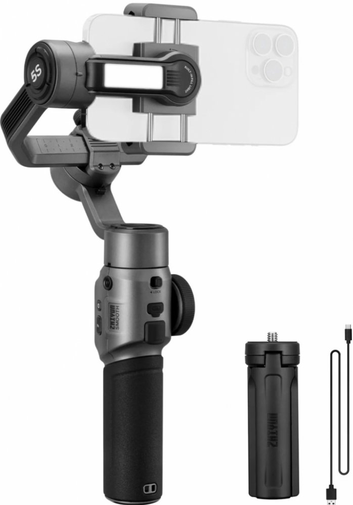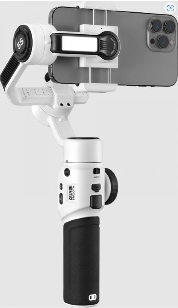 Zhiyun Smooth 5S přebírá design velkých, profesionálních gimbálů. Oproti velkým gimbalum však vyvažujete pouze jednu osu, kdy je důležité aby smartphone zůstal v horizontální rovině. Tento typ zpracování umožňuje využití přídavných mobilních objektivů (poradí si s jejich hmotností). Nosnost gimbalu je však 300g.