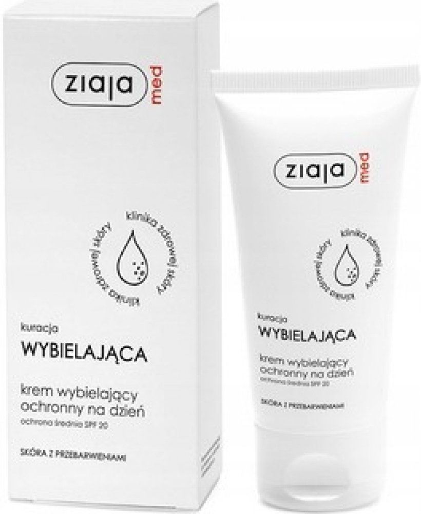 Pleťový krém **Ziaja Med Whitening Protective Day Cream** chrání pleť proti vzniku pigmentových skvrn, stávající nerovnoměrnou pigmentaci zesvětluje a vyrovnává barevný tón pleti. Je **určený pro pleť s hyperpigmentací** způsobenou nadměrným sluněním, pobytem v soláriu nebo v důsledku hormonálních změn.