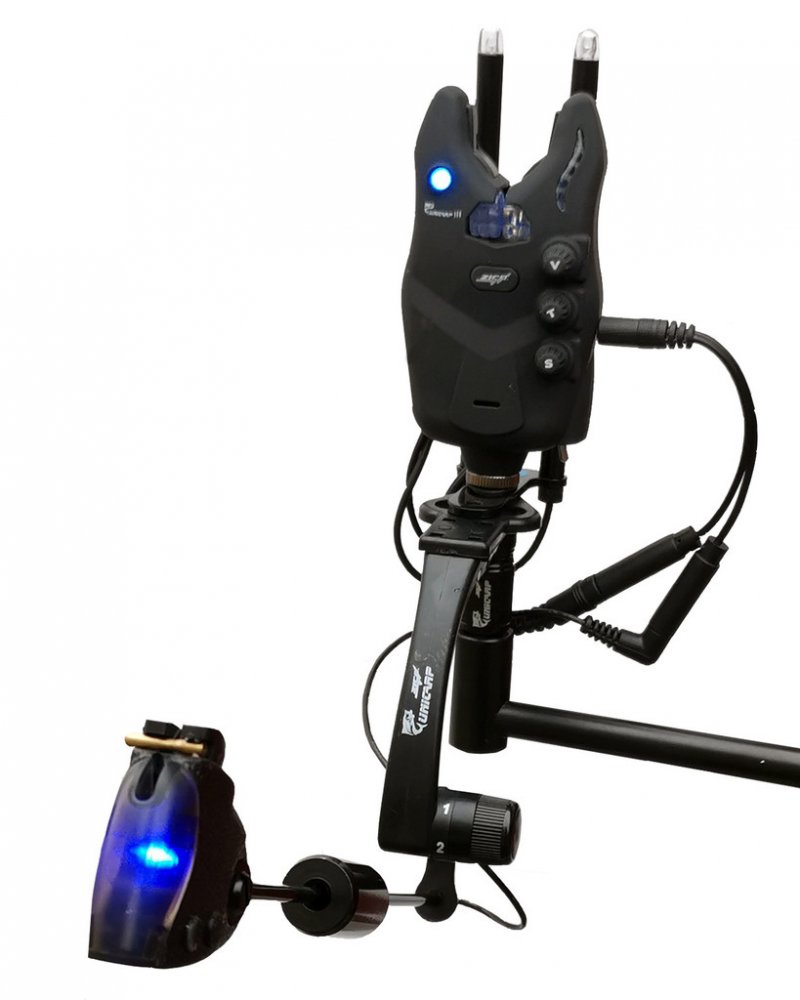 Osvětlují prostor rolny signalizátoru a přitom brání vyskočení prutu při extrémním vlivům počasí nebo silném proudu řeky, tedy i záběru do strany. Dvě horní LED svítí pouze při záběru ryby (pootočení rolničky) a jsou napájeny baterií z indikátoru. Zapojení je pomocí vlastního 2,5mm konektoru, nebo propojení do rozdvojky Unicarp pod označením UNI ROZ. Po propojení se signalizátorem pomocí konektoru...