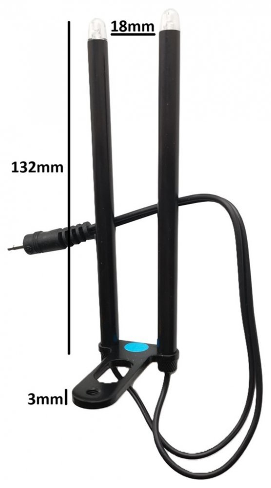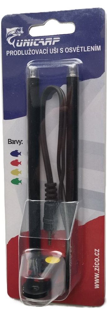 Osvětlují prostor rolny signalizátoru a přitom brání vyskočení prutu při extrémním vlivům počasí nebo silném proudu řeky, tedy i záběru do strany. Dvě horní LED svítí pouze při záběru ryby (pootočení rolničky) a jsou napájeny baterií z indikátoru. Zapojení je pomocí vlastního 2,5mm konektoru, nebo propojení do rozdvojky Unicarp pod označením UNI ROZ. Po propojení se signalizátorem pomocí konektoru 2,5mm, se po záběru na uších rozsvítí horní LED diody. Diody u uší nejsou multibarevné a je nutné objednat požadovanou barvu (modrá, červená, zelená, žlutá) Výška: 132 mm, rozteč pro prut: 18 mm, tloušťka podstavy: 3 mm
