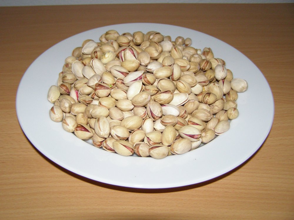 Plody pistácií mají béžovou skořápku. Jádro může být barvy žluté až po nejrůznější odstíny zelené. Dozrálá skořápka podélně puká. Pistácie obsahují 40 - 60 % tuků, 19 - 23 % bílkovin, 15 - 16 % sacharidů. Pistácie mají vysoký obsah provitamínu A, vitamíny skupiny B, železo, fosfor, draslík a vápník. Nabízené pistácie jsou nepražené, nesolené a neloupané.