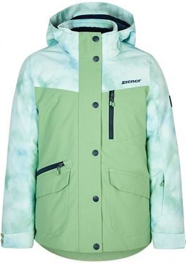 Dětská zimní bunda Ziener Anoki v atraktivním pastelovém zeleno-modrém provedení se díky své konstrukci a vlastnostem stane oblíbeným kouskem všech královen sjezdovek. Zateplená membránová bunda je pohodlná, hřejivá, voděodolná, větruvzdorná a samozřejmě prodyšná. Skvěle chrání před nepřízní počasí, současně však zabraňuje nadměrnému pocení a následnému prochladnutí. Vychytávky v podobě mnoha kapes a funkčního střihu usnadní pohyb na svahu. Doplňte lyžařskou bundu vhodnou i pro juniory zimními kalhotami a rukavicemi - vznikne tak lyžařský outfit, se kterým budou dobrodružky zaručeně IN!KonstrukceFunkční bunda má podlepené švy a fleecovou podšívku na límci a zádech - příjemně hřeje.Nastavitelný protisněhový pás a šířkově nastavitelný lem.Bunda je celorozepínací, v horní části je zip ukončený do ochrany brady.Praktická nastavitelná kapuce podle DIN EN 14682 pro dětské oblečení.Konce rukávů lze stáhnout dle potřeby, uvnitř jsou elastické manžety.2 hlavní kapsy na zip, vnitřní kapsa ze síťoviny na lyžařské brýle, voděodolná kapsa na zip, náprsní kapsa a kapsa na skipas. Dekorativní reflexní prvky.MateriálTepelný komfort a sucho zajišťuje prodyšná, nepromokavá a větruvzodrná membrána AQUASHIELD® s vodním sloupcem 10 000 mm a prodyšností 10 000 g/m²/24 h spolu se 120g zateplením. Bunda je ošetřená voděodolnou, ekologicky šetrnou povrchovou úpravou bez obsahu PFC.Složení: 100% polyester. Podšívka: 100% polyamid / 100% polyester.Membránové oblečení doporučujeme ošetřovat šetrným pracím prostředkem Nikwax Tech Wash a impregnací Nikwax T.X. Direct Wash-in.