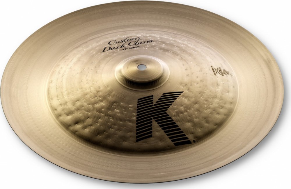 K Custom Dark China je tenký činel s povrchovou úpravou Traditional, středně jasným středovým až vysokým zvukem a krátkým sustainem.