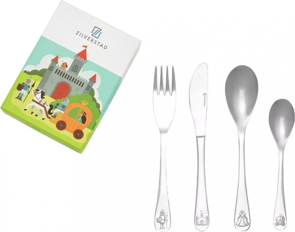 Sada dětského příboru Zilverstad s motivem rytířů a princezen obsahuje čtyři kusy – vidličku, nůž, lžíci a malou lžičku. Příbory jsou vyrobeny z kvalitní nerezové oceli, která zajišťuje pevnost, odolnost a bezpečné používání. Stříbrné provedení dodává příborům elegantní vzhled a univerzálně se hodí na každý stůl. Příbory je možné mýt v myčce. Sada je dodávána v dárkové krabičce. Klíčové vlastnosti sady dětského příboru Zilverstad, Rytíři a princeznySada příborů obsahuje vidličku, nůž, lžíci a malou lžičkuPříbory jsou vyrobeny z kvalitní nerezové oceliNerezová ocel zajišťuje pevnost, odolnost a bezpečné používáníStříbrné provedení dodává příborům elegantní vzhledPříbory je možné mýt v myčceSada je dodávána v elegantní dárkové krabičce