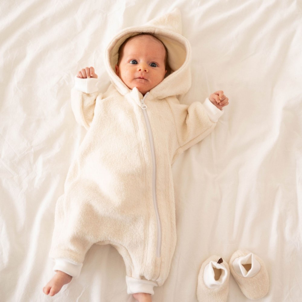 BIO bavlněný beránek je vysoce kvalitní, certifikovaný a hypoalergenní materiál, který je jemný k dětské pokožce a který dětem poskytuje příjemný tepelný komfort. I přes svou hřejivost je prodyšný a umožňuje pokožce dýchat. Díky univerzální krémové barvě se hodí pro holčičky i chlapečky. Oblečení z beránka je také s oblibou využíváno i jako dárek pro nastávající nebo čerstvé maminky.