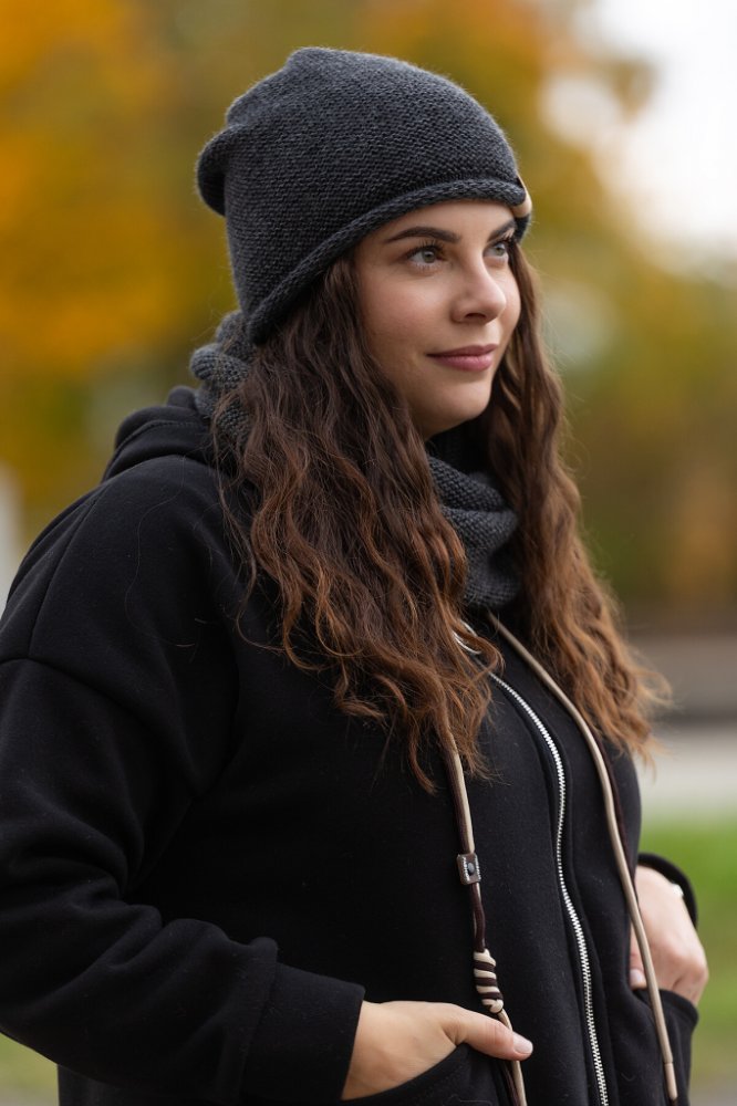 Zimní set čepice a nákrčník KLASIK Tmavě šedá