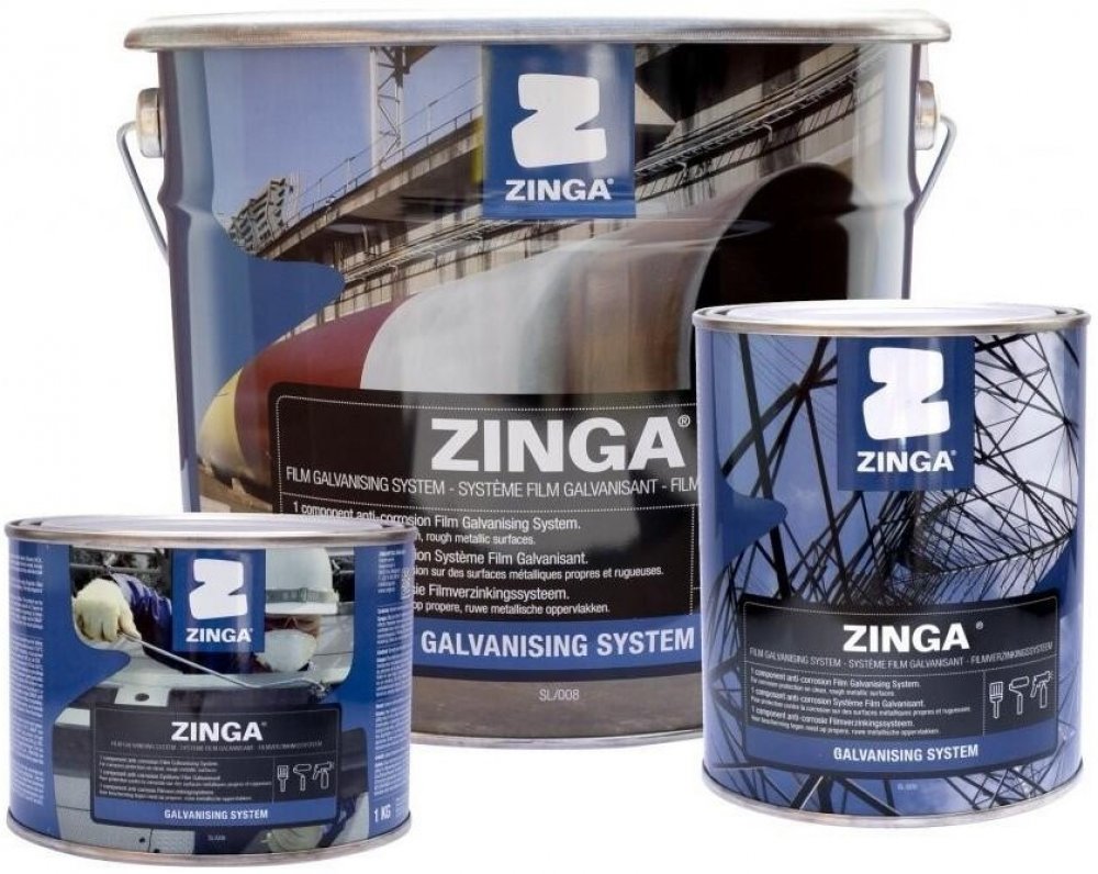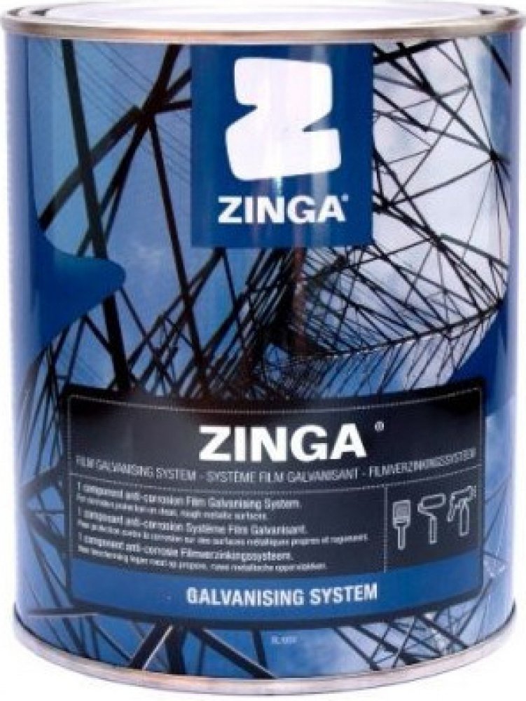 ZINGA antikorozní zinkový nátěr na ocel a jiné kovy Hmotnost balení: 0,5kg Nátěrová hmota ZINGA se používá jako primární nebo finální systém antikorozní ochrany ocelových konstrukcí a jiných kovů. ZINGA se dále používá k opravám erodovaných či poškozených galvanizovaných - pozinkovaných ocelových součástí. Belgický nátěrový systém ZINGA obsahuje elektrolytický zinek o čistotě 99,995% a tím poskytuje nejlepší ochranu proti korozi, má ochranný efekt a životnost srovnatelnou se žárovým zinkování...