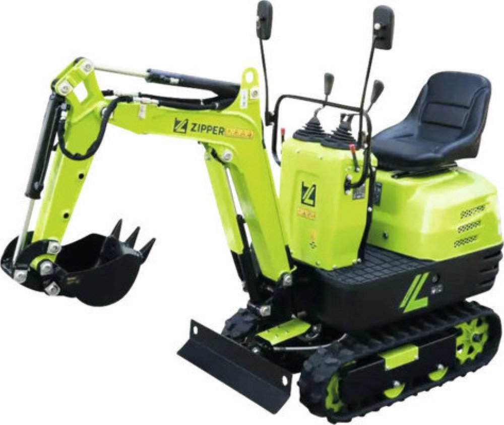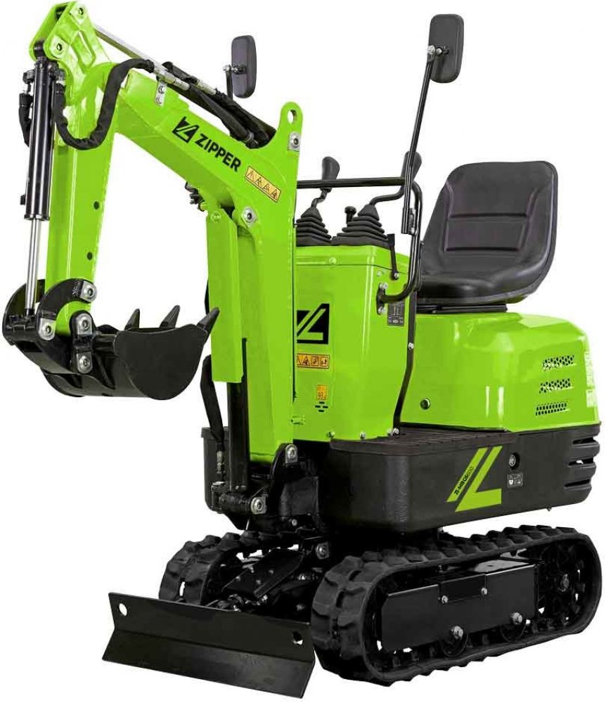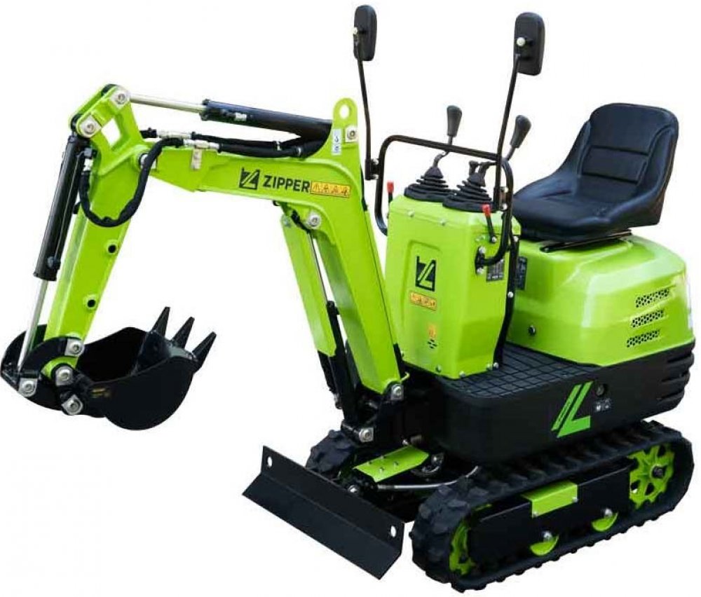 Minibagr s paletovými vidlemi / radlicí / víkem pro lžíci rypadla, rýpací trny, svahová lžíce