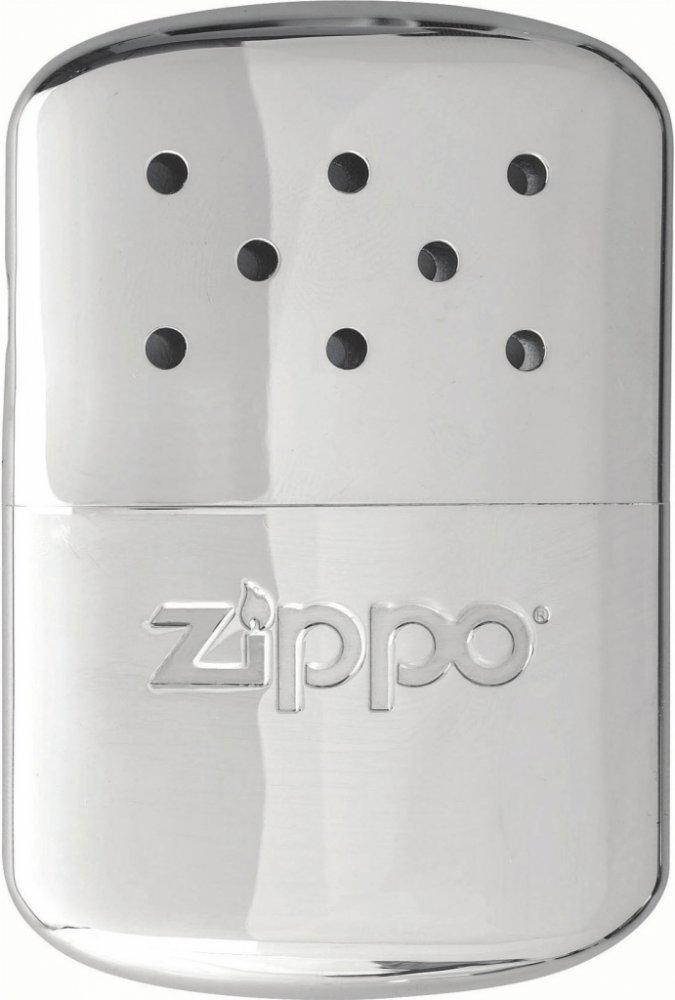 Zippo ohřívač rukou. Naplní se klasickým benzínem do zapalovače Zippo, zapálí se hořák, který pomalu žhne a vytváří teplo. Na jedno naplnění vydrží hřát až 12 hodin. Součástí balení je pouzdro na ohřívač a odměrka na benzín. Ohřívač má rozměry 102 x 68 x 16 mm.