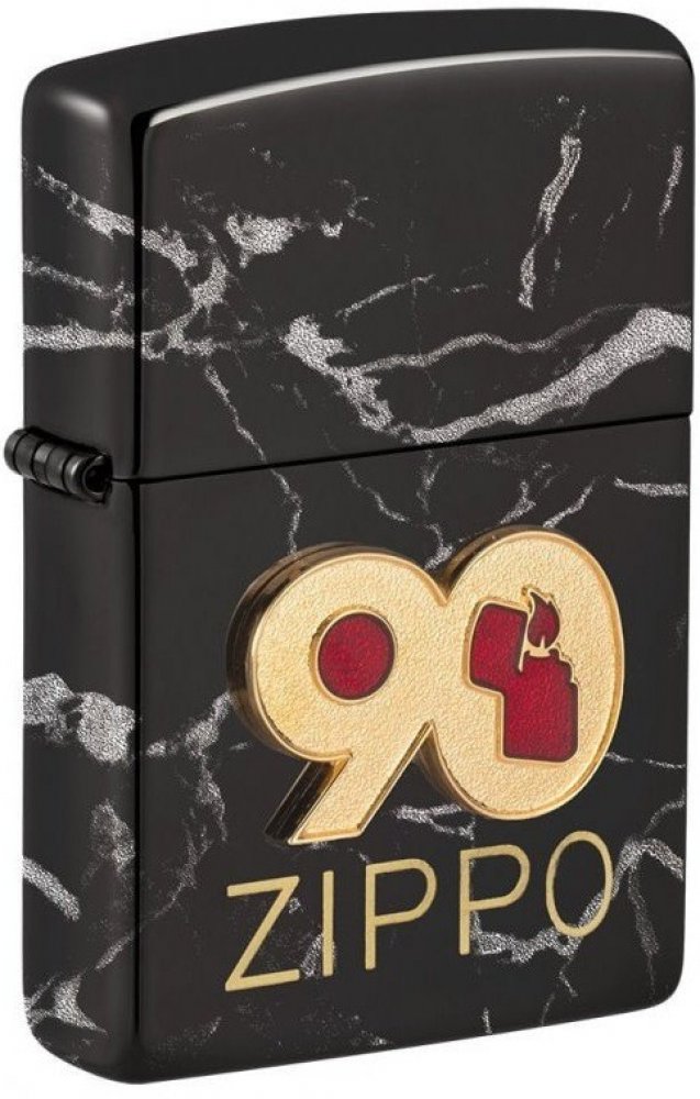 Zapalovač Zippo 22046 90th Anniversary Commemorative s povrchem High Polish Black. Výroční model k 90. výročí společnosti Zippo.