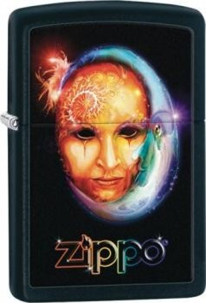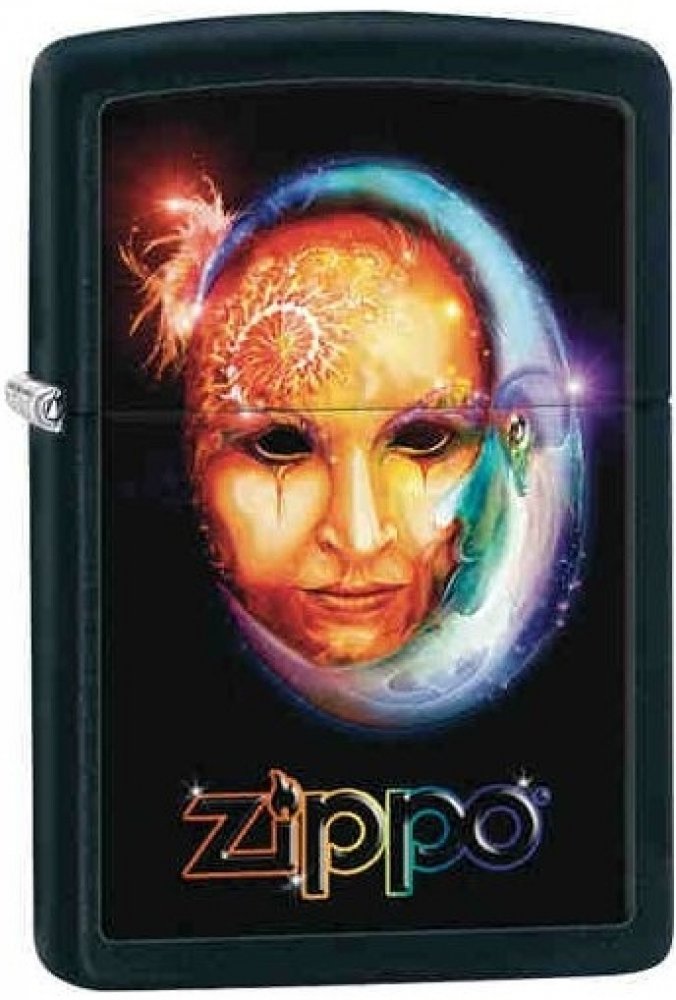 Benzínový zapalovač Zippo Venetian Mask 26610, tmavý zapalovač v matném provedení s potiskem v zářivých barvách. Vyrobeno v USA.