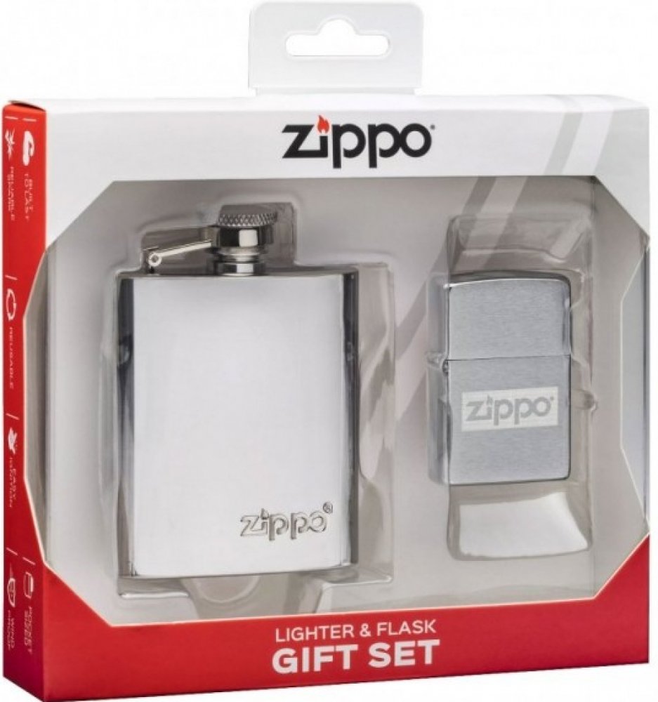 Originální dárková sada Zippo 200 Zippo Design obsahuje zapalovač Zippo s placatkou. V atraktivním dárkovém setu najdete benzínový zapalovač Zippo v broušeném chromovém provedení s logem a nerezovou likérku Zippo s leštěným chromovým povrchem. Placatka vyrobená z kvalitního nerezového plechu má objem 89ml (3oz). Dodávaný zapalovač v sadě není naplněn benzínem. Originální příslušenství benzín Zippo, kamínky, knoty a vata do zapalovače Zippo, zajistí správné fungování benzínové zapalovače. Na mechanické závady zapalovače poskytuje Zippo doživotní záruku. Tuto záruku můžete uplatnit přímo u nás. Zapalovače jsou vyrobené v USA, Original Zippo® Bradford.