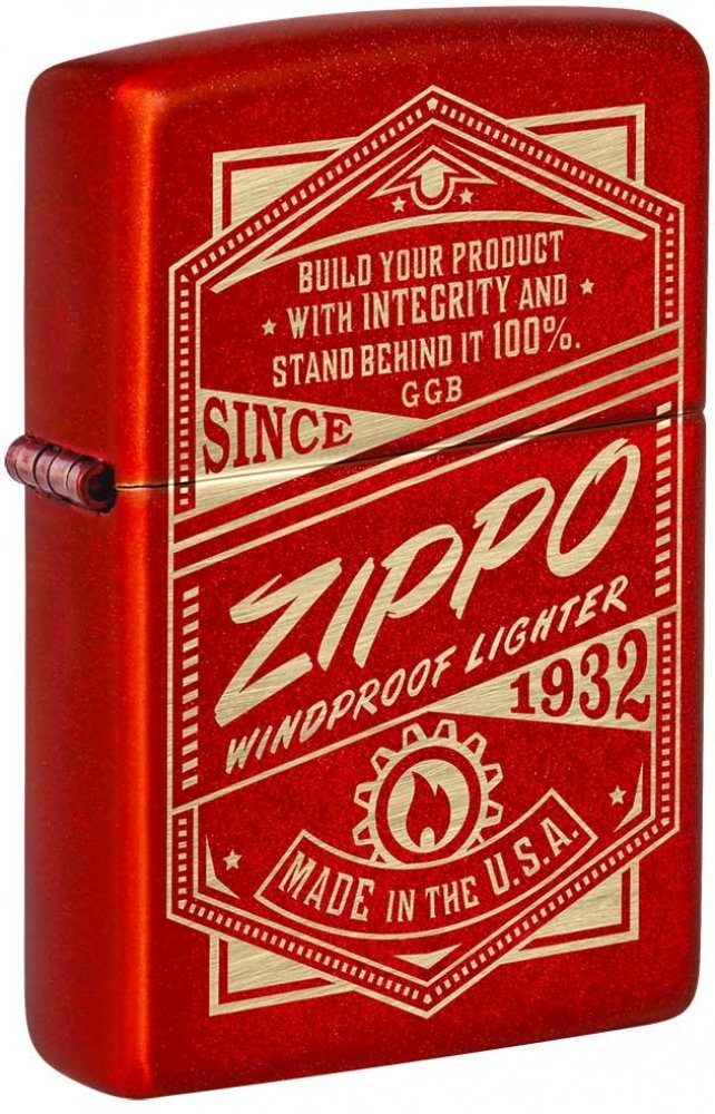 Originální zapalovač Zippo 26060 Zippo It Works Design s povrchem Metallic Red.