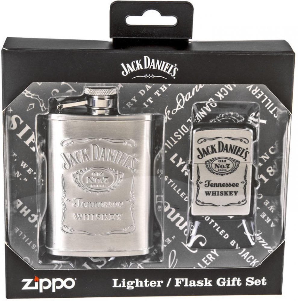 Zippo Jack Daniels Satin Chrome and Flask Gift Set 49080