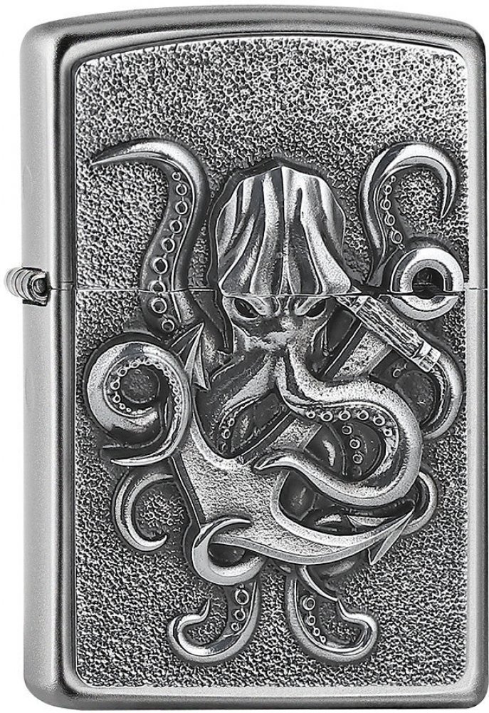 Zippo zapalovač s 3D emblémem chobotnice. Zippo je kovový benzínový zapalovač s doživotní zárukou a více než 90letou tradicí. Tyto kvalitní zapalovače se vyrábějí výhradně v USA.