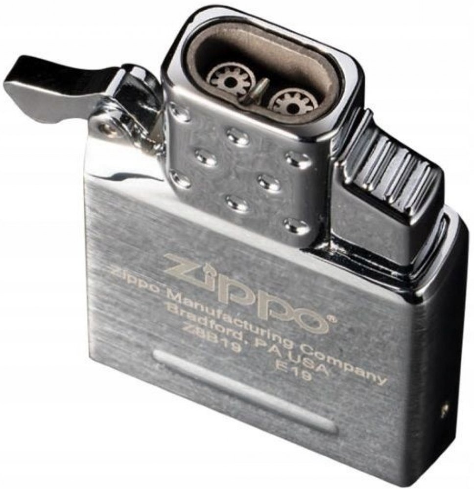 Zippo plynový insert do benzínového zapalovače. Originální plynová vložka Zippo s dvěma tryskami je vhodná pro všechny klasické benzínové zapalovače Zippo - není určena pro dámské slim zapalovače Zippo. Kovový plynový insert Zippo je v lesklém chromovém provedení. Na spodní straně najdeme plnící plynový ventil a ovládání intenzity plamene. Jednoduše vyndáte původní benzínovou vložku, vsunete vložku plynovou a turbo zapalovač je na světě ve stejném Vámi oblíbeném designu benzínového zapalovače Zippo. Plynový insert je dodávaný nenaplněný v originální krabičce. Rozměry vložky 5,2x3,6x1,2cm.