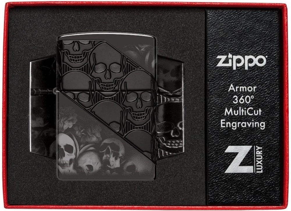 Tento mrazivě temný Zippo Armor® zapalovač v provedení High Polish Black přináší jedinečné MultiCut gravírování v kombinaci s tajemným 360° Photo Image designem. Díky extra silnému kovovému tělu je až 1,5× robustnější než běžné Zippo zapalovače, což zaručuje vyšší odolnost a jedinečný pocit v ruce.