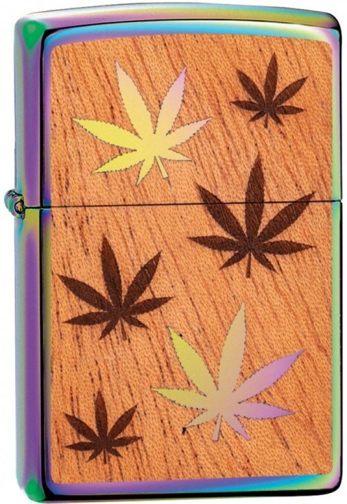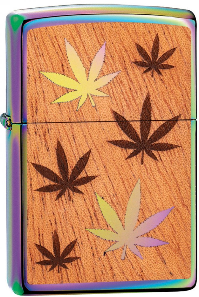 Klasický benzinový zapalovač Zippo 26887 Woodchuck USA Leaves v povrchové úpravě Multi Color. Tento zapalovač je zdobený oboustraným dřevěným emblémem. Přední stranu zapalovače zdobí laserem vyřezané konopné listy, skrze které prosvítá povrch zapalovače. Na zadní straně najdete logo Woodchuck. Díky barevné kresbě dřevěného emblému je každý zapalovač originál. Dodáváno ve speciální sběratelské krabičce. Nový zapalovač není naplněn palivem - doporučujeme plnit originálním Zippo benzínem do zapalovačů.