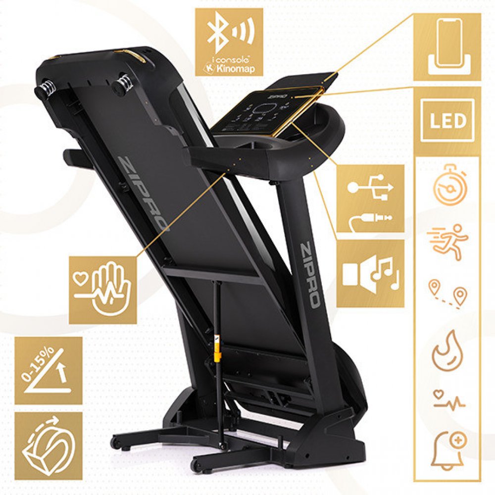 Běžecký pás Zipro Dream má vše, co očekáváte od zařízení pro domácí tréninkBěžecký pás Zipro Dream vám umožní užívat si běžeckých tréninků bez ohledu na počasí venku. Pás je potažený protiskluzovým povrchem pro bezpečné používání a o komfort při cvičení se postará efektivní tlumící systém, který eliminuje vibrace a snižuje zatížení vašich kloubů. U běžeckého pásu Zipro si lze upravit i sklon a to až do 15 stupňů (volba stupeň po stupni), čímž lze účinně simulovat běh do kopce. K tomu přispívá také nastavení rychlosti, kterou lze zvolit od 1 do 20 km/h. Váš běžecký trénink si je možné zpříjemnit například poslechem hudby díky vestavěným reproduktorům a vstupem pro USB. Maximální nosnost běžeckého pásu je 150 kg.Klíčové vlastnosti běžeckého pásu Zipro DreamBěžecký pás vhodný pro domácí využitíPás potažen protiskluzovým povrchemEfektivní tlumící systém eliminuje vibrace při běhu a méně zatěžuje kloubyMožnost nastavení sklonu pásu do 15 stupňů (simulace běhu do kopce, volba stupeň po...
