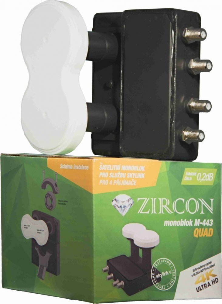 Exkluzivní Slim provedení pro snadnější montáž a menší zatížení paraboly. Speciálně navržen pro Českou a Slovenskou republiku. Jediný monoblok testovaný operátorem Skylink. Příjem 2 družic s rozestupem 4,3°