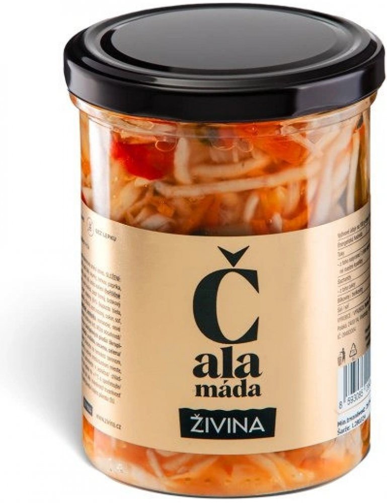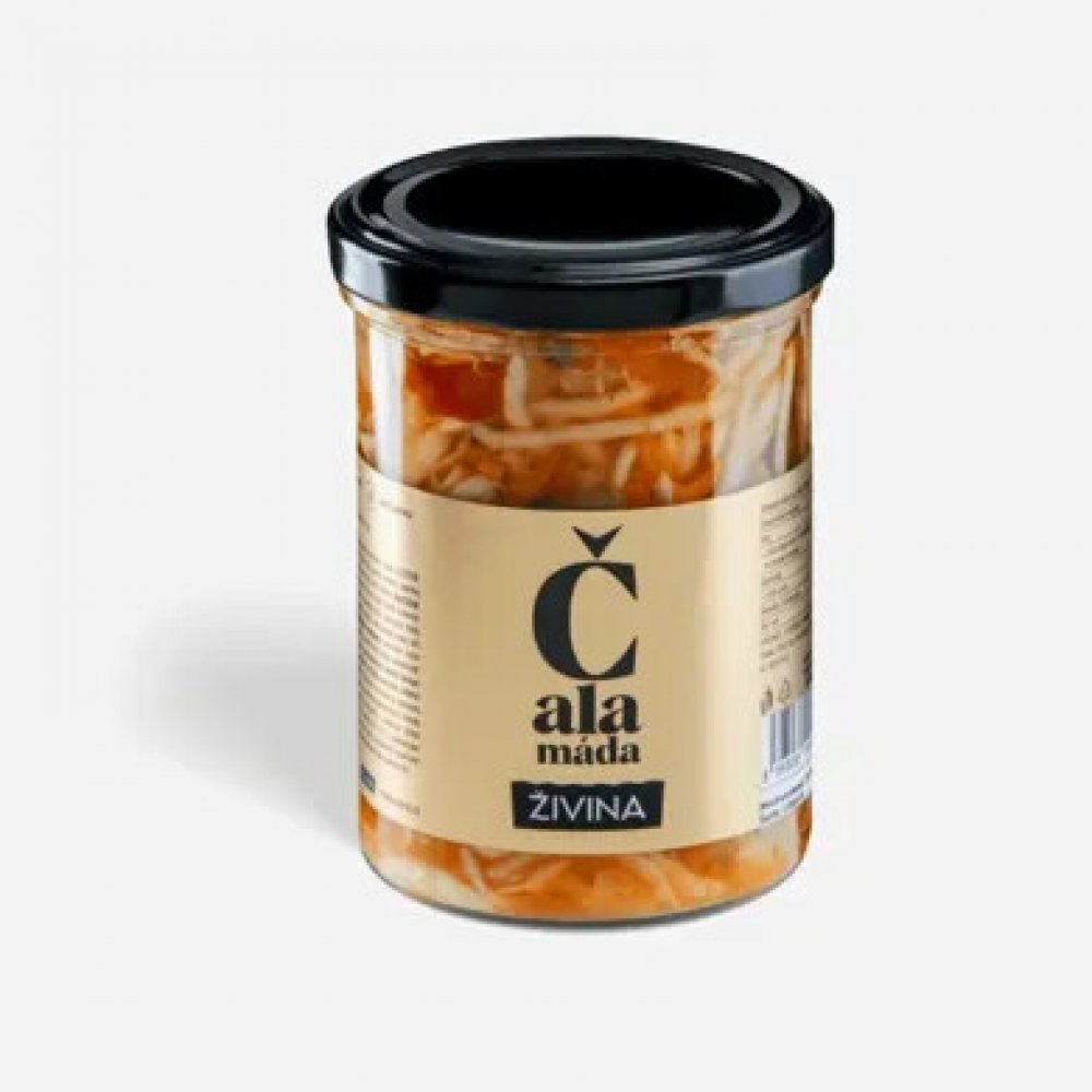 ŽIVINA Čalamáda je svěží a křupavá zeleninová směs, která dodá šmrnc každému jídlu. Zelenina je uložena v octovém nálevu dochuceném pečlivě vybraným kořením, jako jsou hořčičná semínka, koriandr a nové koření.