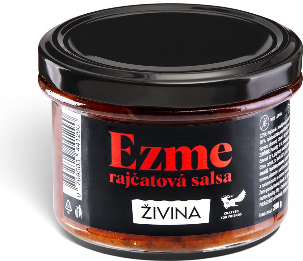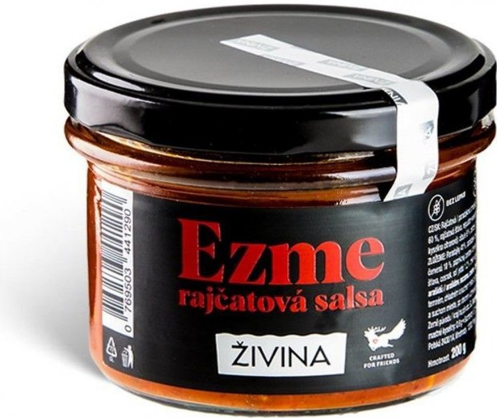 **Ezme rajčatová salsa Crafted for Friends** je výsledkem jedinečné spolupráce mezi Živinou a šéfkuchaři z prestižní restaurace Červený Jelen – executive chefem Markem Fichtnerem a spolumajitelem Patrikem Jarošem.
