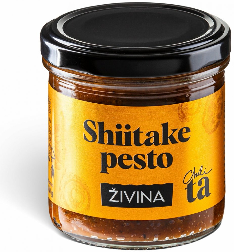 Shiitake pesto s výraznou umami chutí, které vzniklo z hub macerovaných v teriyaki omáčce a doplněných o kešu, česnek, limetku, zázvor a bylinky. Stačí jedna lžička a dodáte hloubku těstovinám, nudlím, vývarům i obyčejnému toastu. Skvěle funguje také jako marináda na tofu nebo maso a jako rychlý dochucovací trik do polévek a ramenů.