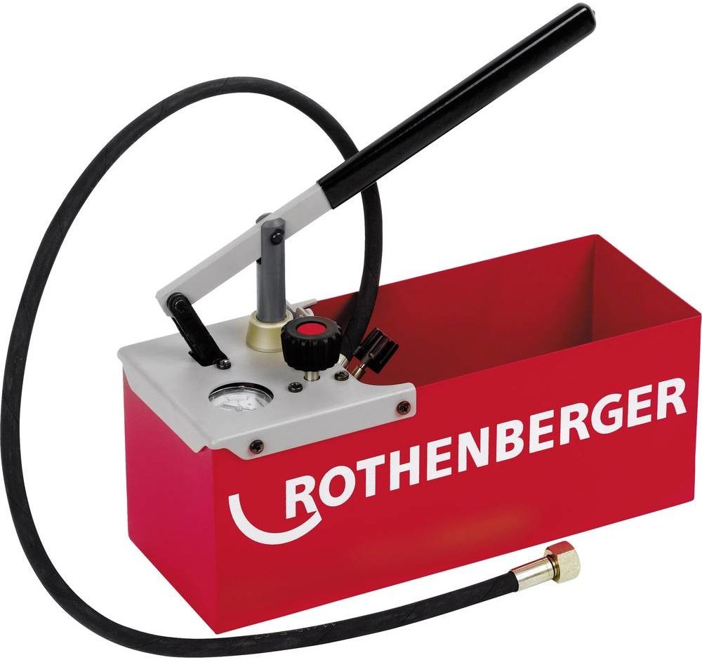 ROTHENBERGER Zkušební pumpa TP25 Zkušební pumpa ROTHENBERGER TP25 je vysoce odolné a přesné zařízení určené pro kontrolu těsnosti a tlakové zkoušky topných a chladicích systémů. Pumpa umožňuje snadné vytváření a udržování tlaku až do 25 bar, což zajišťuje spolehlivost testovaných instalací. Díky robustní kovové konstrukci a integrovanému manometru je vhodná pro profesionální použití v oblasti kotl...