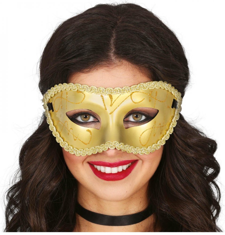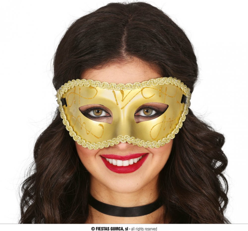 Dámská maska se zlatým lemem.