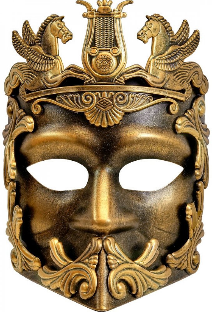 Historická škraboška odkazující na starověk.