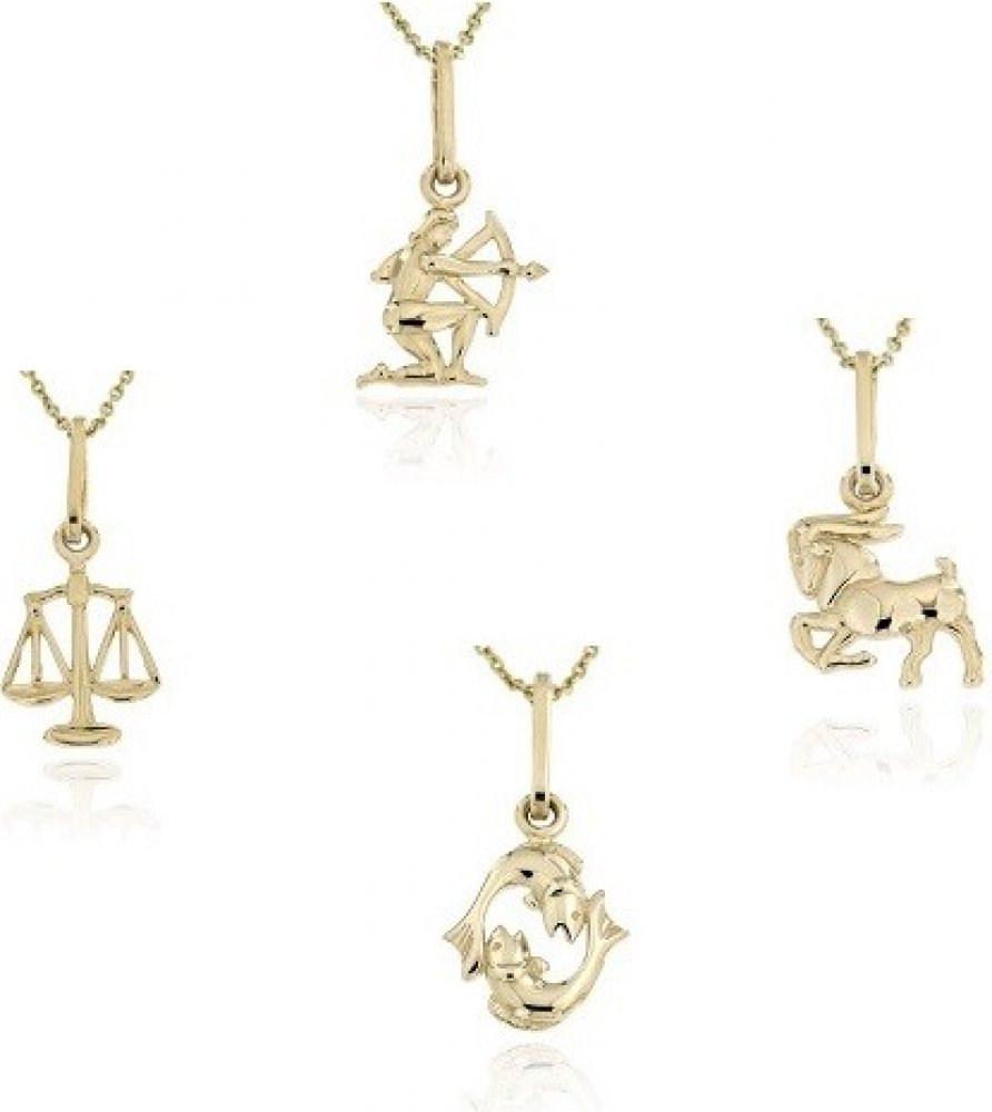 Přívěsky vyrobené ze žlutého zlata v ryzosti 585/1000 s motivy znamení zvěrokruhu.