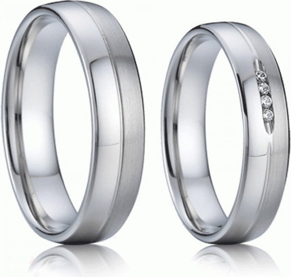 Ocelové snubní prsteny Jack a Rose, rytí do prstenů. Krásné ocelové snubní prsteny jsou díky svému zpracování praktické pro každodenní nošení. Prsteny jsou v kombinaci lesku a saténového matu. Dámský prsten zdobí čtyři zirkony.