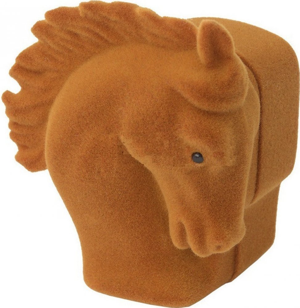 Originální sametová krabička ve tvaru koně, vhodná na náušnice, prsten i přívěsek. Vnitřní výplň je v bílé barvě.