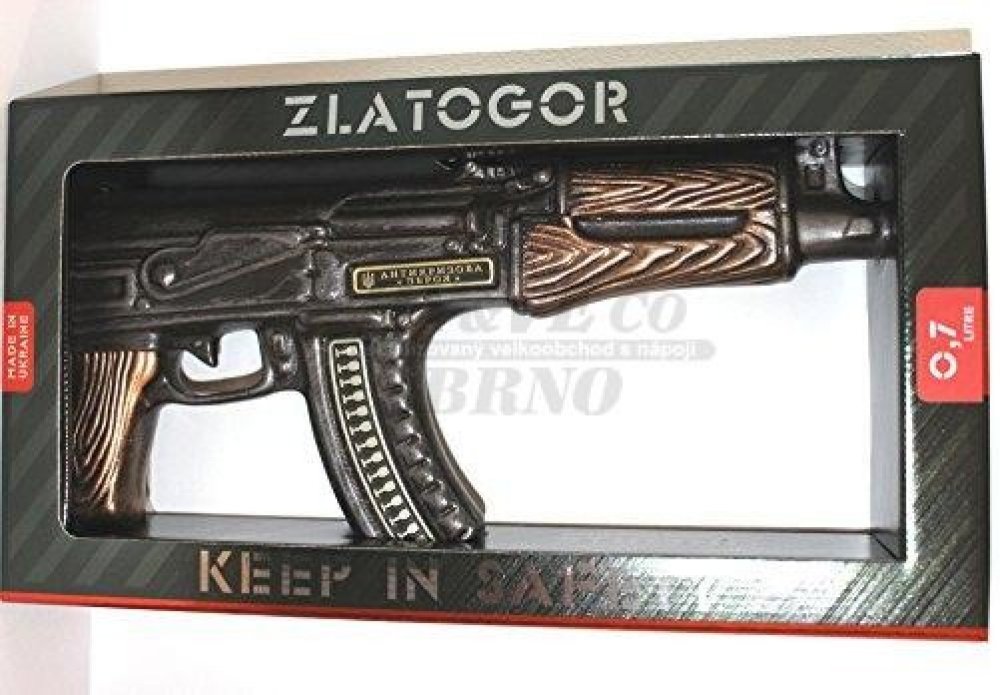 Limitovaná edice ukrajinskej vodky Zlatogor, která je naplněna do láhve s podobou útočné pušky AK-47. Vyrábí se z těch nejkvalitnějších surovin a podle nejnovějších technologií na základě receptury odborníků z Kyjevské botanické zahrady. Při výrobě se používá nejčistší artéská voda z hloubky 195 metrů.