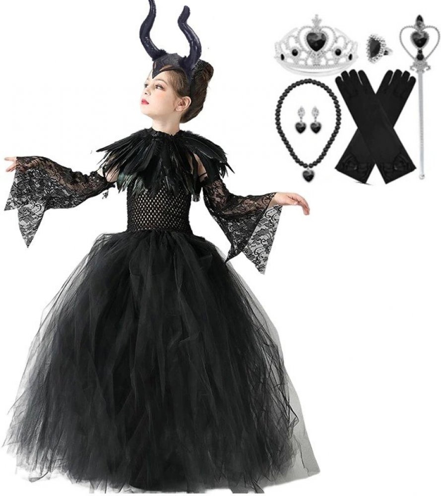 Krásný dívčí kostýmek královny Zloby ze známé pohádky Zloba - Královna černé magie.