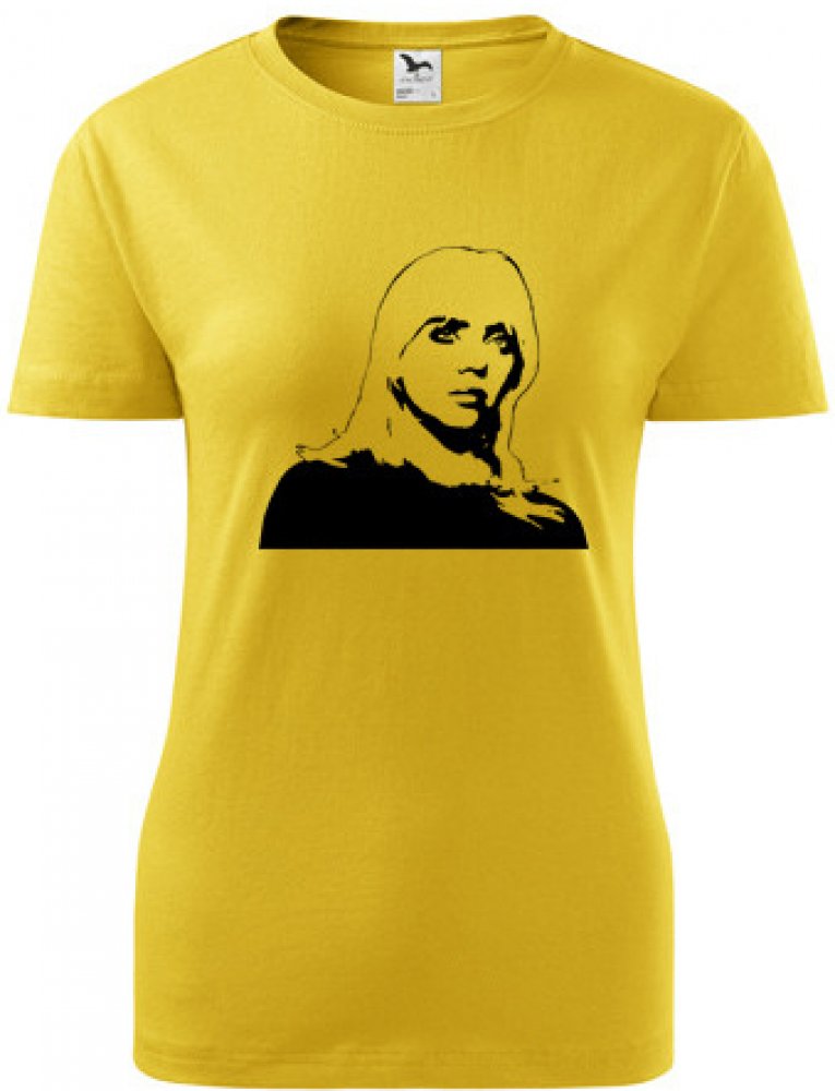 Žluté dámské tričko Billie Eilish. nabízené velikosti jsou S,M,L,XL,XXL. Výběr z 12ti barev. Tričko patří do kategorií . Technologie potisku: Tisk na tričko je realizován pomocí termolisu a potisk je velice trvanlivý.