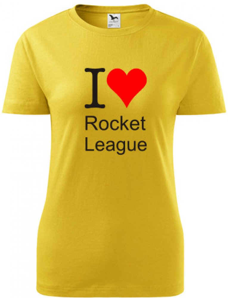 Žluté dámské tričko I love Rocket League. nabízené velikosti jsou S,M,L,XL,XXL. Výběr z 12ti barev. Tričko patří do kategorií Trička I love závodní hry - dámská, Dárek pro hráčky počítačových her, . Technologie potisku: Tisk na tričko je realizován pomocí termolisu a potisk je velice trvanlivý.