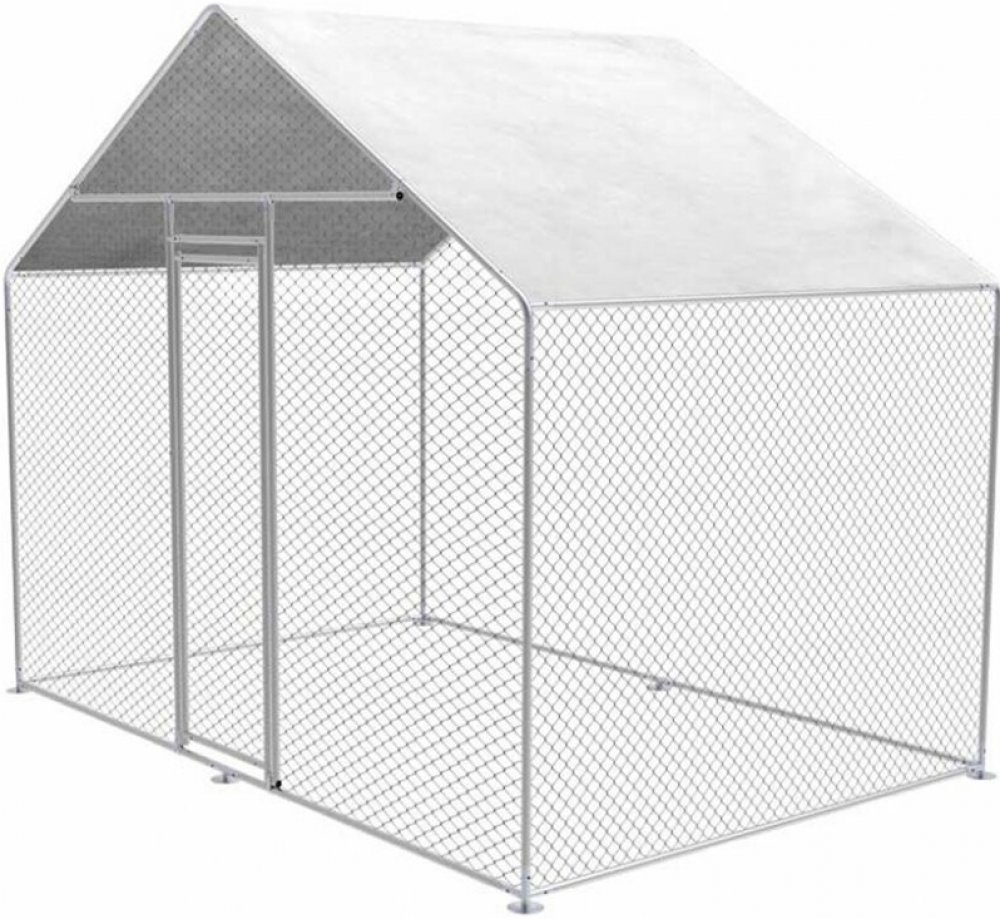 Výběh pro drůbež pozinkovaný, modulární zásuvný systém, pozinkované drátěné pletivo potažené PVC, velikost ok ohrady 45x25mm, velká vstupní branka, pozinkované trubky Ø25x0,65mm, ochranná plachta proti přímému slunci, rozměry 300x200x245cm.