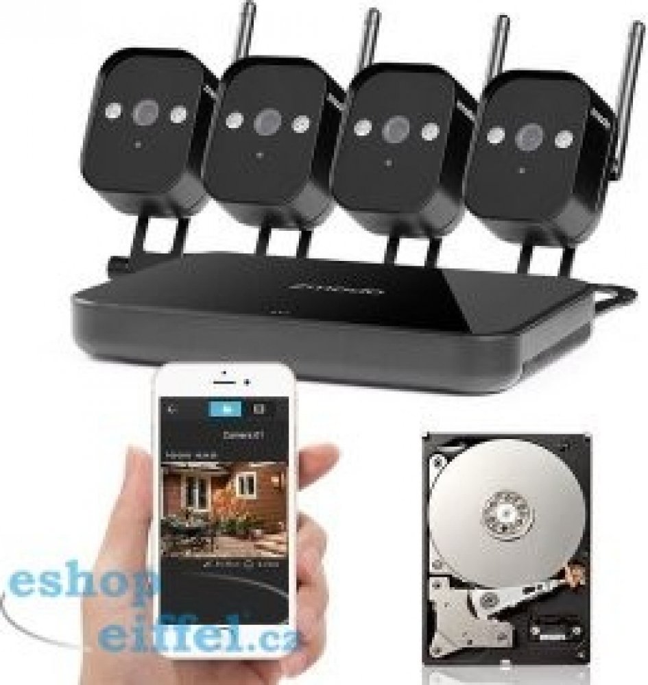 Čtyřkanálový NVR all-in-one systém umožňuje připojit a nastavit až 4 venkovní 720P WiFi kamery během několika minut. Nemusíte být odborníkem na počítačích nebo sítích, nastavení je velmi jednoduché. Obraz i nahrávky na disku můžete sledovat na připojeném monitoru nebo na mobilních zařízeních pomocí aplikace MeShare.