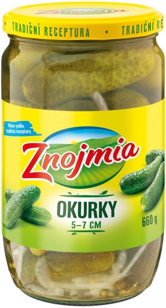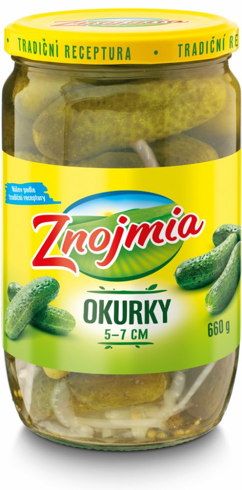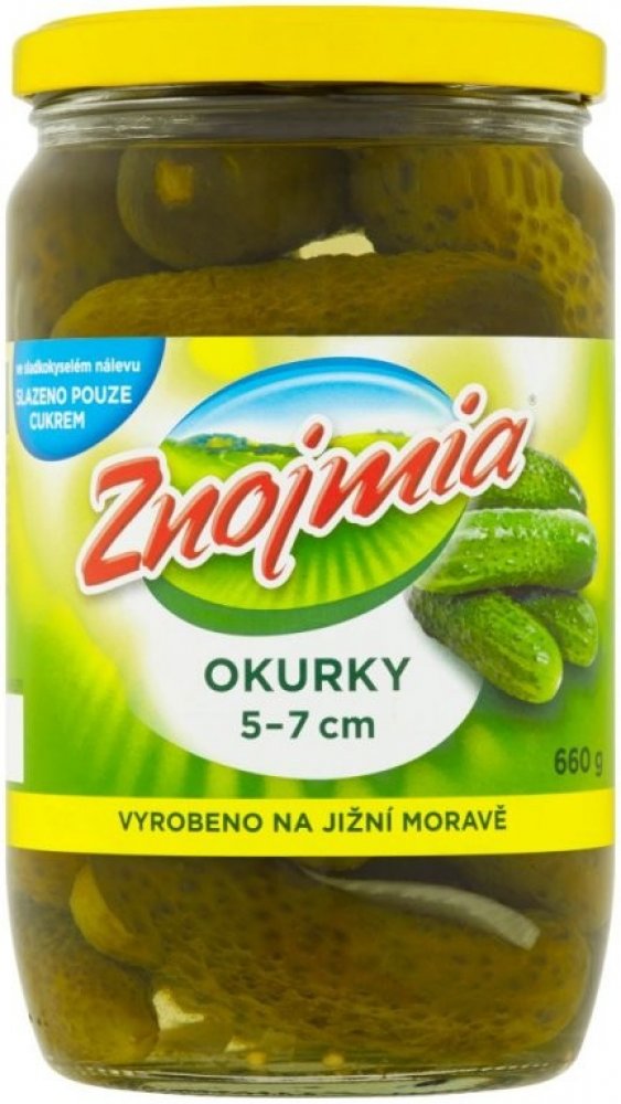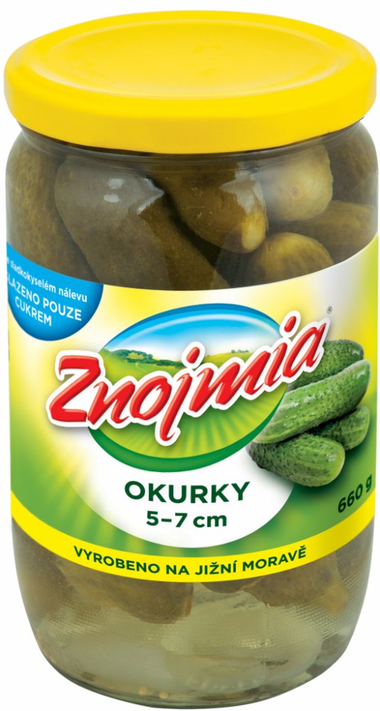 Ve sladkokyselém nálevu, Slazeno pouze cukrem, Vyrobeno na Jižní Moravě, Tipy na recepty (viz QR kód)., Okurky sterilované v kořeněném sladkokyselém nálevu podélně tříděné 50 - 70 mm. Zpracovaná zelenina. Sterilovaná zelenina jednodruhová.,