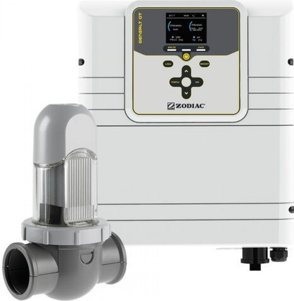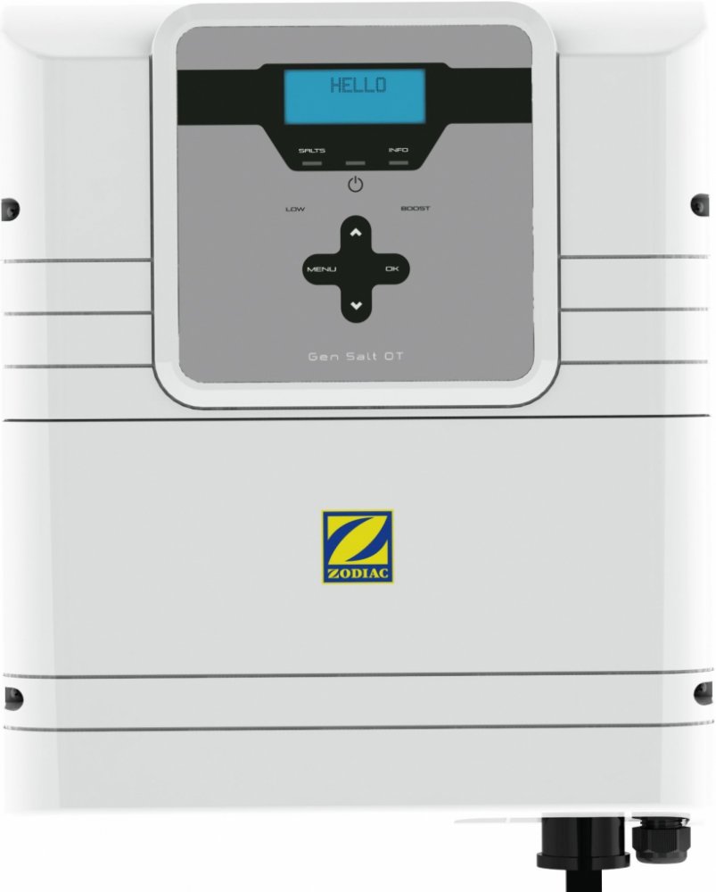 Zodiac® GENSALT OT 18 má krytí IP43 a maximální produkcí chlóru 18g/h pro privátní bazény do 70 m3