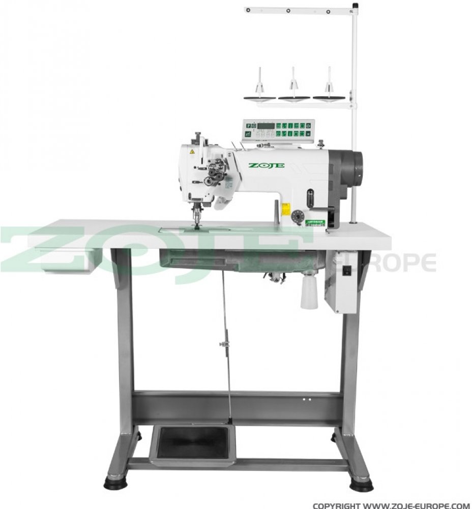 2-jehlový automatický šicí stroj s vázaným stehem, jehelním podáváním pro lehké a střední materiály. Stroj má zabudovaný servomotor v hlavě stroje. Standardně je stroj vybaven automatickými funkcemi : odstřihem nití, zapošitím, zdvihem patky, nastavení pozice jehly, odhoz, panel pro nastavení programů a vestavěné 3-stupňové LED osvětlení pracovní plochy. Spodní a jehelní podávání, rozpich jehel 6,...