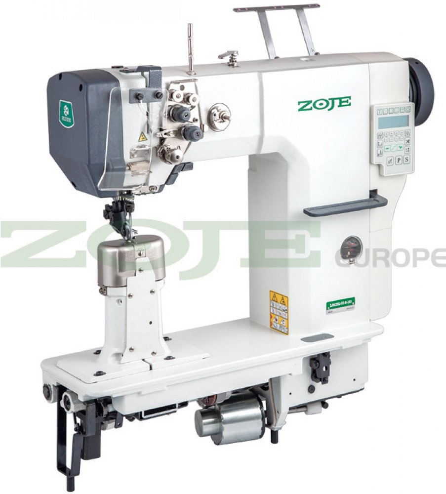 Automatický 2jehlový sloupový šicí stroj se spodním kolečkovým a aktivním kolečkovým podáváním na patce (kolečko z levé strany jehly) s automatickými funkcemi jako je: elektromagnetický odstřih nitě, zdvih patky, zpětné podávání s naprogramovanou velikostí počátečního a konečného zapošití, polohování jehel, programovací ovládací panel a energeticky úsporná LED lampa pro osvětlení pracovního pole. ...
